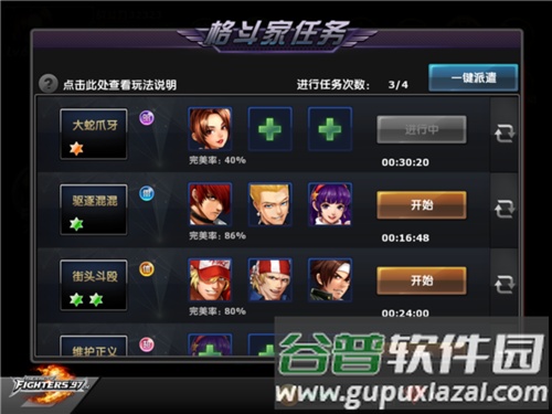 2、每日限完成四次任务,建议将属性优秀的格斗家集中派遣,依次完成任务,避免同时进行导致完美率降低;