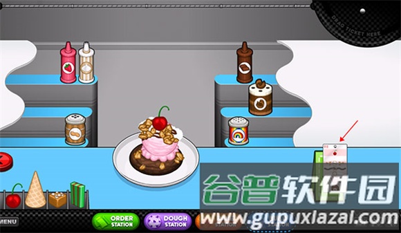 7、制作完成后将右上角对应的菜单项拖动到餐牌上顾客即可看到成品;顾客会根据冰淇淋的质量进行评分并支付相应的小费作为奖励。