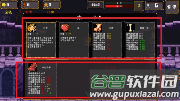 3.升级后也能获得宝箱奖励,界面通常上方显示可供选择的四项物品,下方则展示已装备的内容。
