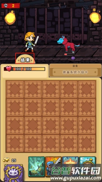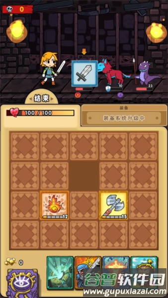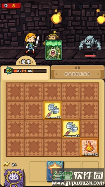 建议在发现楼梯后留一个怪物反复对战,刷取满级大剑、满级斧头、三张卡牌升级道具及一张吸血鬼卡牌即可保持状态;