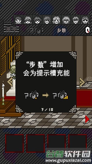 7、同时,“步数”增加会为屏幕上的提示槽充能,帮助玩家获得解谜线索。