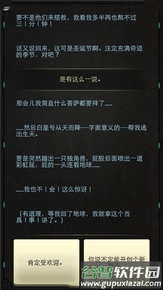 6、出现“万一出什么岔子呢?先拿点吧”选项时必须点击,开始收集通古斯石;可适当多拿,但不宜停留过久,以免引来感染船员。