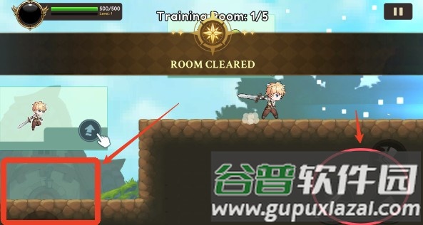 1、游戏操作主要通过左侧轮盘控制角色移动,右下角设有攻击与跳跃按键。
