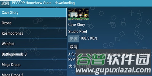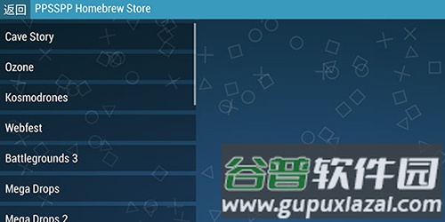 1、点击上方【自制游戏与试玩】按钮,选择【从PPSSPP自制服务器下载】。