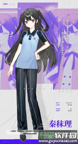 这位是班级里公认的优等生,在文科综合与数学上表现突出,但英语似乎是她的弱项;课余时间热爱动漫、二次元手游与即时战略游戏,据说也是一位六国杀的忠实玩家。