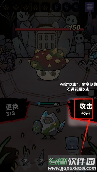 2、接着点击攻击按钮令石兵发起进攻;