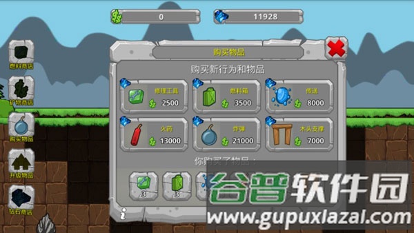 2、拥有足够资金后,可携带各类道具辅助探索,例如修理工具、燃料箱、传送装置、火药等。