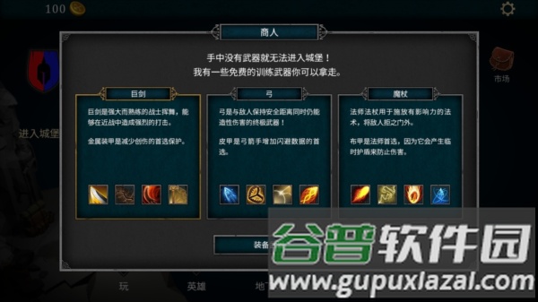 3、首先需要选择一把初始武器,不同武器对应不同的技能体系。