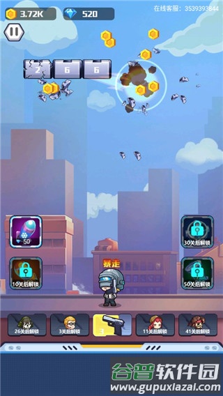 3、击碎上方落下的方块物体,也可使用辅助道具;