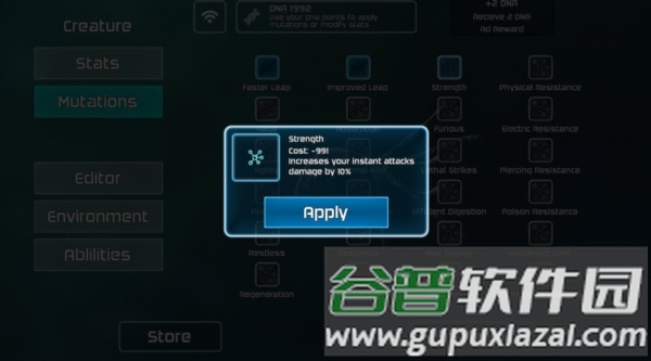 内含丰富的生物定制选项,包括统计、能力、突变、皮肤与颜色等;