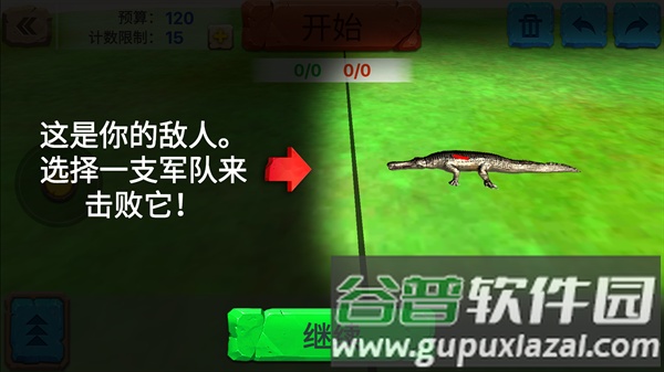 界面右侧显示需要击败的敌人,包括各种凶猛的恐龙,玩家需要部署自己的军队来战胜它们。