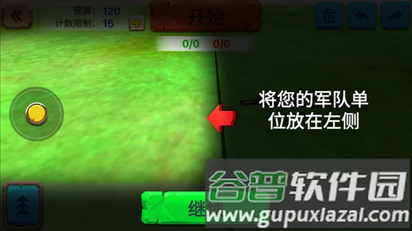 界面左侧是玩家的军队,可以将单位部署在当前位置,注意只能放置在黑线左侧区域。