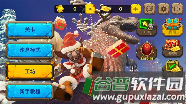 安装游戏后,玩家可以选择关卡模式或沙盒模式进行体验,界面上还有其他功能按键可供使用。