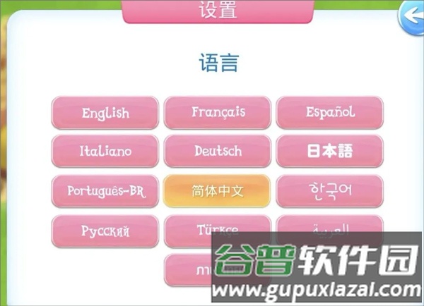 3、在语言列表中选择简体中文,确认后游戏将切换为中文显示。
