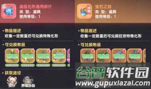 额外道具取得:没有提前储备?别着急。使用“高级化形通用碎片”与“宝石之泪”应急。前者可自主选择提升战力,后者能兑换战力外观;日常多积累一些,就能有备无患。