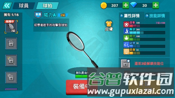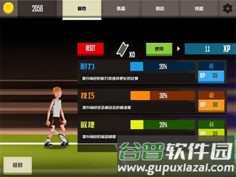 8、通过升级球拍,可以提升攻击、控制等各项性能参数。