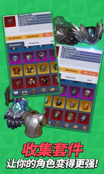 2、在通关时收集敌人的战利品,然后合成更强的装备,逐步强化你的队伍。