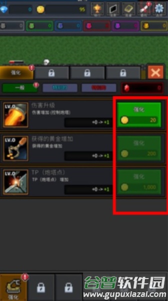 2、拥有庞大的升级体系,炮台与怪物均可升级,从而获取更多资源;