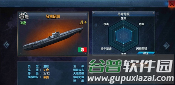 4、第四艘推荐马肯尼级潜艇,与C035类似,速度较低但其他属性非常平均,技能鱼雷潜射能对后排造成大量爆破伤害。