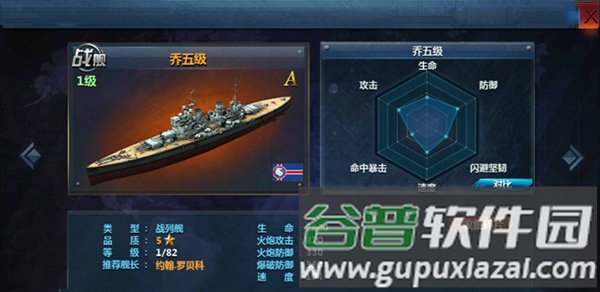8、最后一艘需补充点杀能力,上述舰船已覆盖群体、前排与后排伤害,缺少强力单体输出;推荐乔五级战列舰,其火炮攻击出色,技能可对单一目标造成巨额伤害;将其置于最后出手位置,能确保收割残血敌舰。