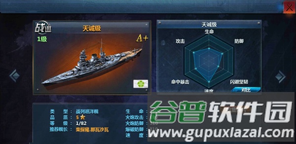 6、第六艘推荐天城级战列巡洋舰,拥有165的高速度,技能可对敌方前排造成火炮伤害。
