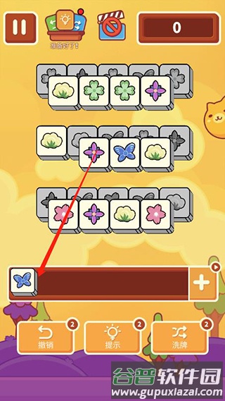 1、点击选中相同图案的方块,集满三个即可消除,释放卡槽空间;