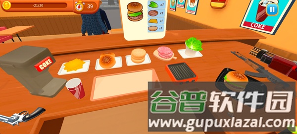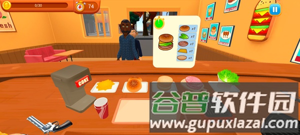 4、根据顾客头顶显示的订单要求,逐步制作对应的汉堡。