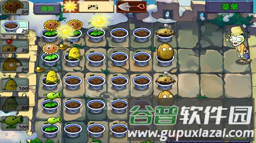 3、将土豆地雷放置在最前排,可以有效解决最初几波僵尸。