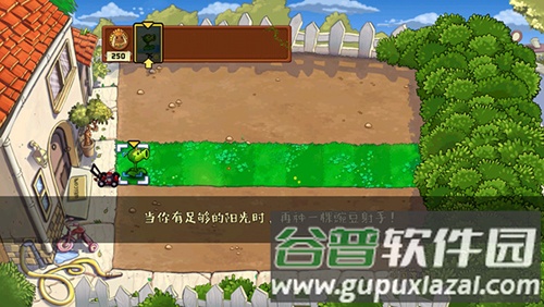 3、当阳光数量足够时,可以种植第一株豌豆射手来开始攻击。