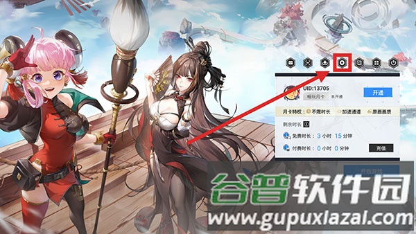1、在云游戏启动界面,点击右侧窗口上方的设置图标。