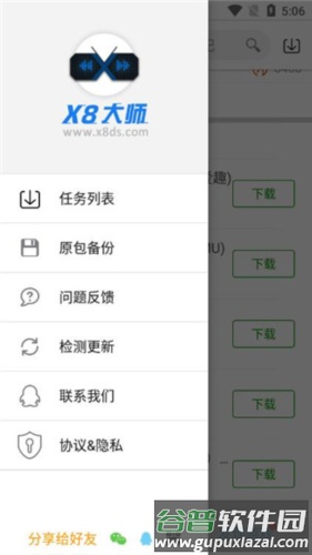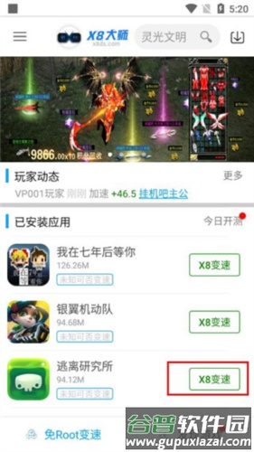 1、在手机上安装x8大师加速器以及所需游戏。