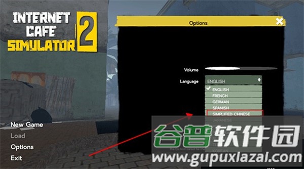 1、启动游戏后界面为英文,点击options选项。