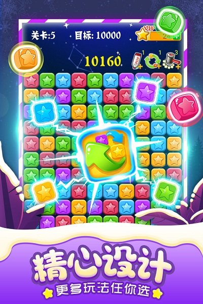 这是消灭星星系列推出的全新力作,本次版本做了全方位优化升级,画面UI精细度大幅提升,还加入了大量全新玩法,整体消除手感得到全面更新。研发团队在原有经典玩法已经获得大量玩家认可的基础上,还新增了多种不同的消除模式,满足不同玩家的游玩需求。