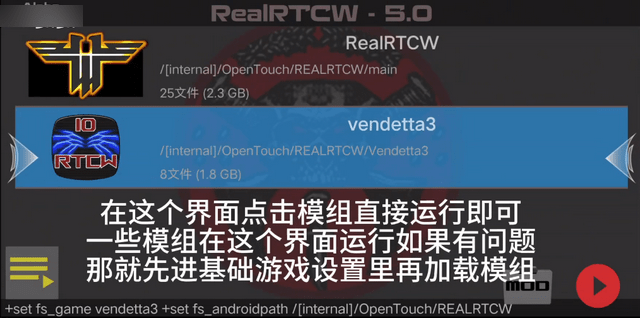 3、模组下载完成后先解压,把整个模组文件夹放在基础游戏数据文件夹的同级目录,也就是两个文件夹放在同一个路径下,比如重返德军总部写实版的基础游戏文件夹路径为OpenTouch/REALRTCW,里面的main文件夹就是该版本的基础游戏数据文件夹,模组就放在main的同级目录,也就是放在OpenTouch/REALRTCW这个路径下,直白来说直接放到REALRTCW文件夹里就可以了。