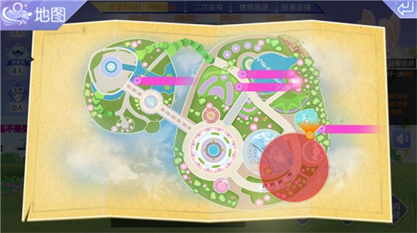 3、本次更新后,躲猫猫玩法提升了躲藏者的游戏难度,之前的躲藏者可以变身为物品藏在地图角落直到对局结束都不会被发现,现在地图中会随机刷新魔法干扰,要是躲藏者躲藏的位置刚好刷新了魔法干扰,该区域内的躲藏者会变成羊驼,无法跳跃且移动速度变慢,所以躲藏者遇到这种情况,需要及时离开该区域,避免被追捕者抓到;追捕者在魔法区域不会受到干扰,可以点击左上角的小地图,前往魔法干扰区域追捕没有及时离开的躲藏者。本次更新后躲猫猫玩法新增了小地图功能,玩家可以点击游戏界面左上角的小地图查看全局,了解同伴的位置和魔法区域的刷新位置。