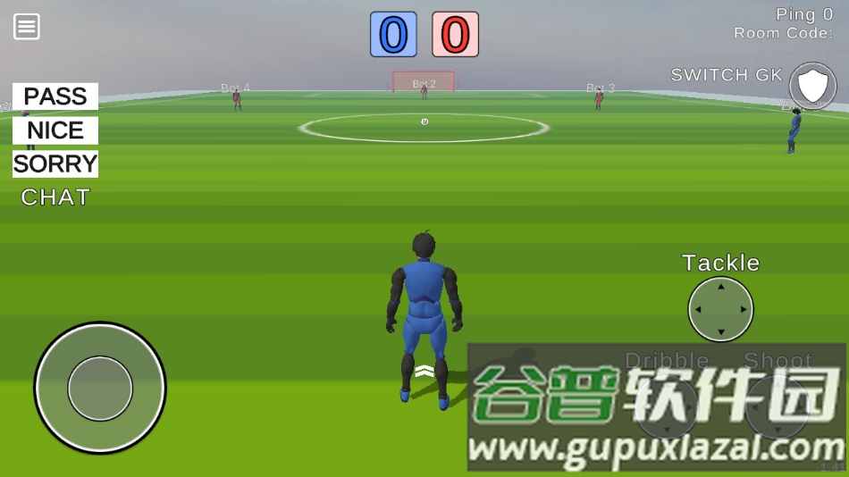 3. 选定模式进入赛场,左边滑动控制角色跑位,右边有抢断、带球和射门的按键。