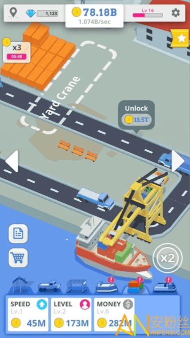 你在游戏里要做的事很简单,就是持续点击操作,不断建造各类港口设施,升级、扩建不停歇。