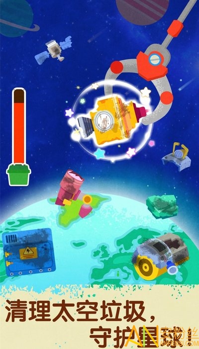 大量太空垃圾正环绕在地球周边;小宇航员要及时出动,操控专属宇宙飞船,瞄准漂浮的垃圾精准抓取,逐步完成清理任务。遇到遇险的飞船要第一时间展开救援;躲避高速飞来的陨石,沿着求救信号的方向追踪,最快速度定位被困飞船的位置。