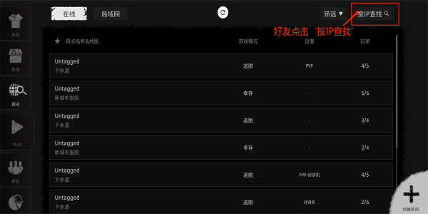 5. 好友拿到IP地址后,打开游戏点击页面右上角的按IP查找选项;