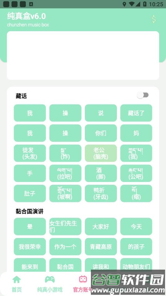 纯真盒v6.0这款软件特别适合喜欢轻松娱乐的朋友,它集成了许多有趣的语音素材和互动元素,让你随时能玩转各种恶搞创意。里面有大量来自丁真的搞笑音频,比如那些经典的表达方式,能让你在聊天或游戏中轻松加分。软件还内置了简单好玩的小游戏,帮助大家更深入地体会这种独特的野性魅力。通过这些资源,你可以随意搭配素材,创造出属于自己的搞笑场景,无论是聚会还是日常闲暇,都能带来不少欢笑。更棒的是,操作起来超级直观,新手也能快速上手,享受这份纯粹的乐趣。如果你平时喜欢用语音活跃氛围,这绝对是个不错的选择,能让你的交流变得更有活力。觉得好用就直接在本站下载吧。