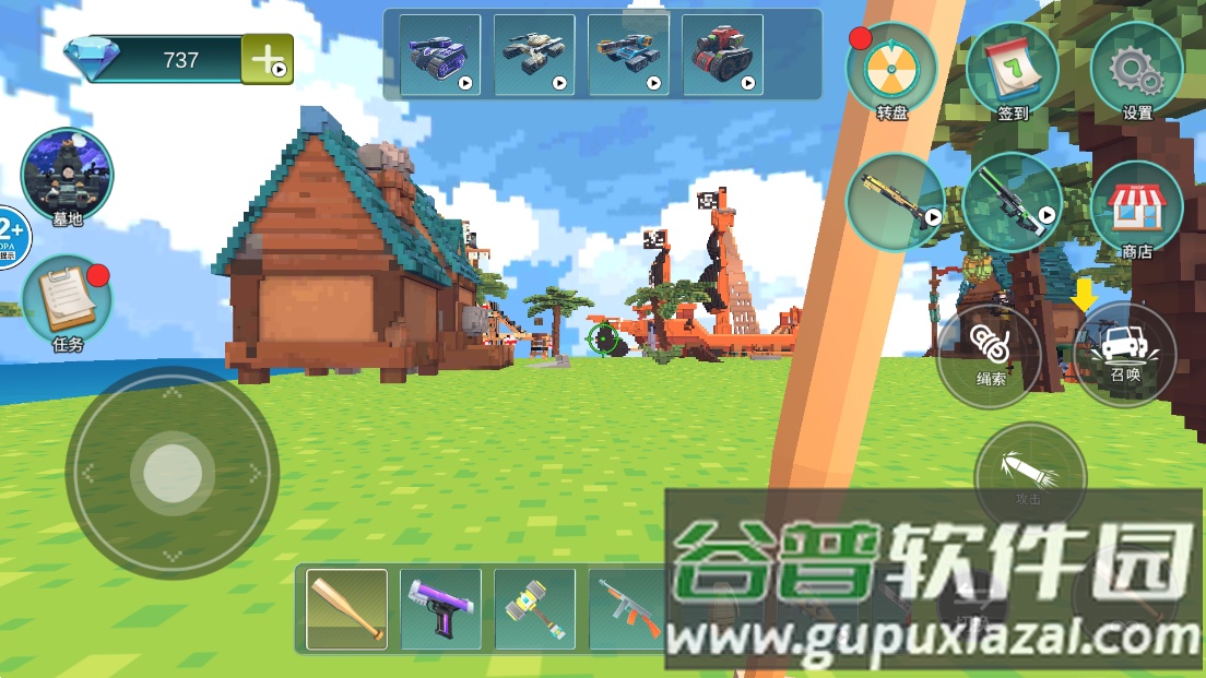 2. 这个方块世界到处是危机,你得拿起武器迎战敌人,享受那种紧张刺激的对抗。