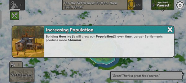 7、靠时间积累足够的资源之后,就可以逐步建造民居提升定居点的人口上限。人口增长会扩大定居点的整体规模,同时带来更多的体力产出,给后续的发展提供更充足的动力支撑。