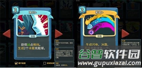 冰川:2费生成2个冰霜球并提供10点格挡;彩虹:2费生成闪电、冰霜与黑暗球各一个,功能全面。