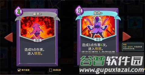 暴怒:1费造成9点伤害并进入愤怒;发泄:1费造成3点伤害4次,随后进入愤怒。