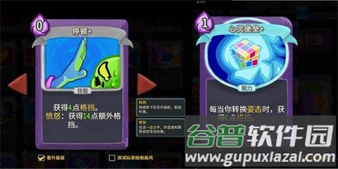 停顿:0费,在愤怒状态下获得14点格挡;心灵堡垒:每次切换姿态时获得6点格挡。这些卡牌为频繁转换姿态提供了生存保障。