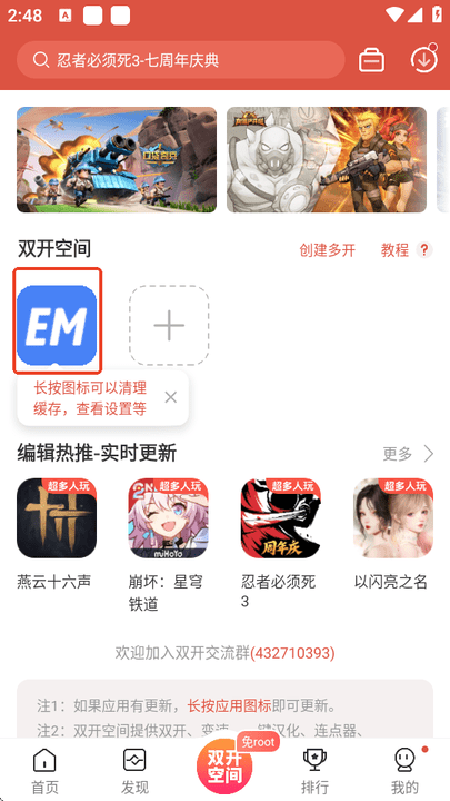 4、支持将软件导入多开空间运行,适配各类使用场景,启动速度快,没有多余卡顿。