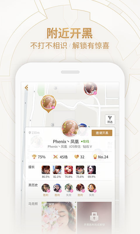 聊天:聊天功能支持随时添加游戏好友,点击对方主页就能随意查看过往战绩。