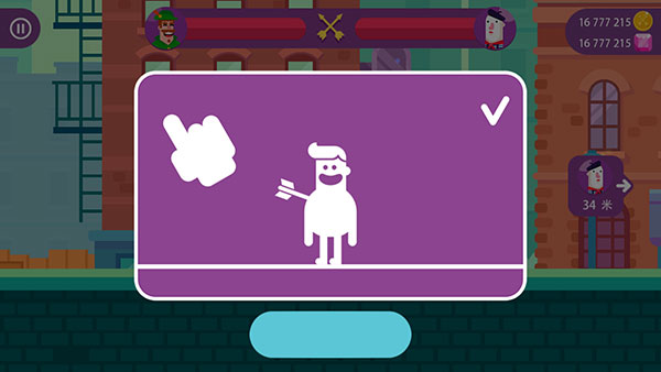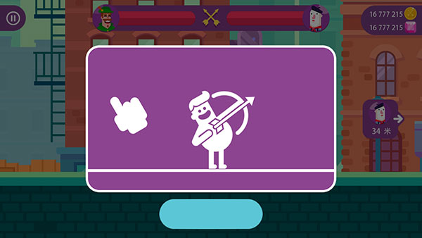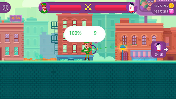 冷血射手也叫Bowmasters,游戏内有大量风格迥异的角色等待玩家解锁,每个角色都绑定了专属的武器装备,外观设计走萌系卡通路线,实际对战玩法却主打爽感,玩家射击时可以触发爆头、断手断脚等特殊效果,甚至能直接将对手彻底淘汰,对局刺激感拉满,非常值得上手体验。