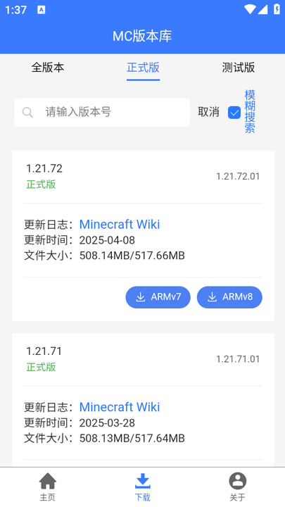 专门给广大mc玩家打造的我的世界版本库,大家能在里面快速获取到我的世界国际服和测试服的安装包,上线至今推出的所有老版本也都能在这里找到对应的下载渠道,平台的版本更新速度始终走在前列,整体页面干净没有多余弹窗和捆绑内容,有相关游玩需求的玩家可以直接按需求操作下载。