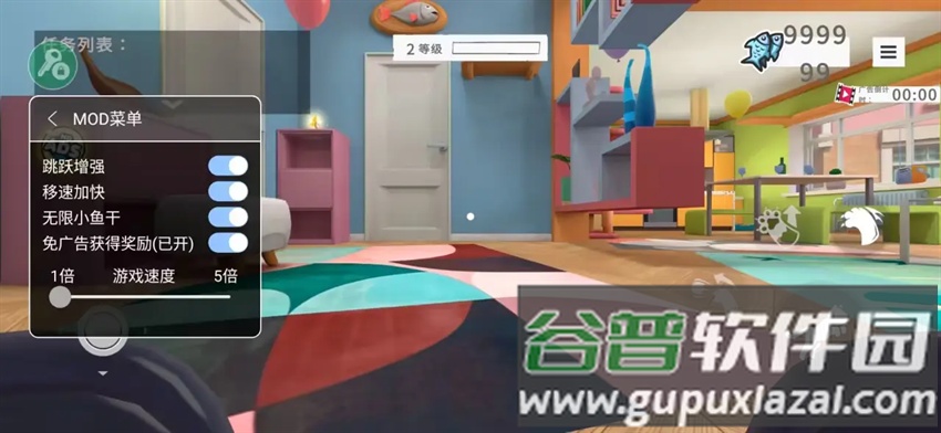 2、加载进入游戏地图后,左侧虚拟按键控制猫咪的移动方向,右侧虚拟按键分别控制猫咪跳跃、和周边物品互动的动作;